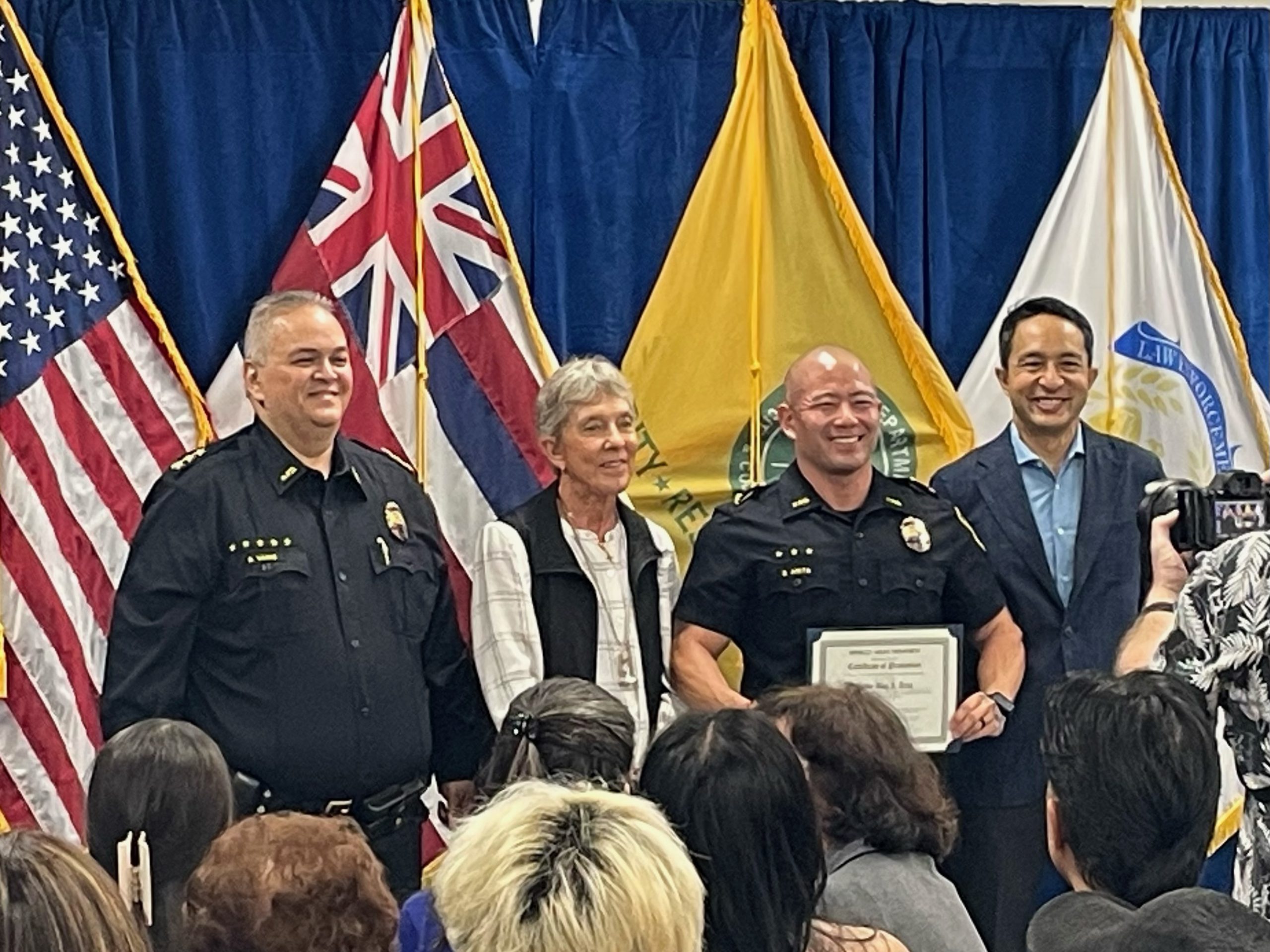 December 16, 2025 Photo with Police Chief Rade Vanic, Police Commissioner Laurie Foster and Deputy Managing Director Krishna Jayaran.